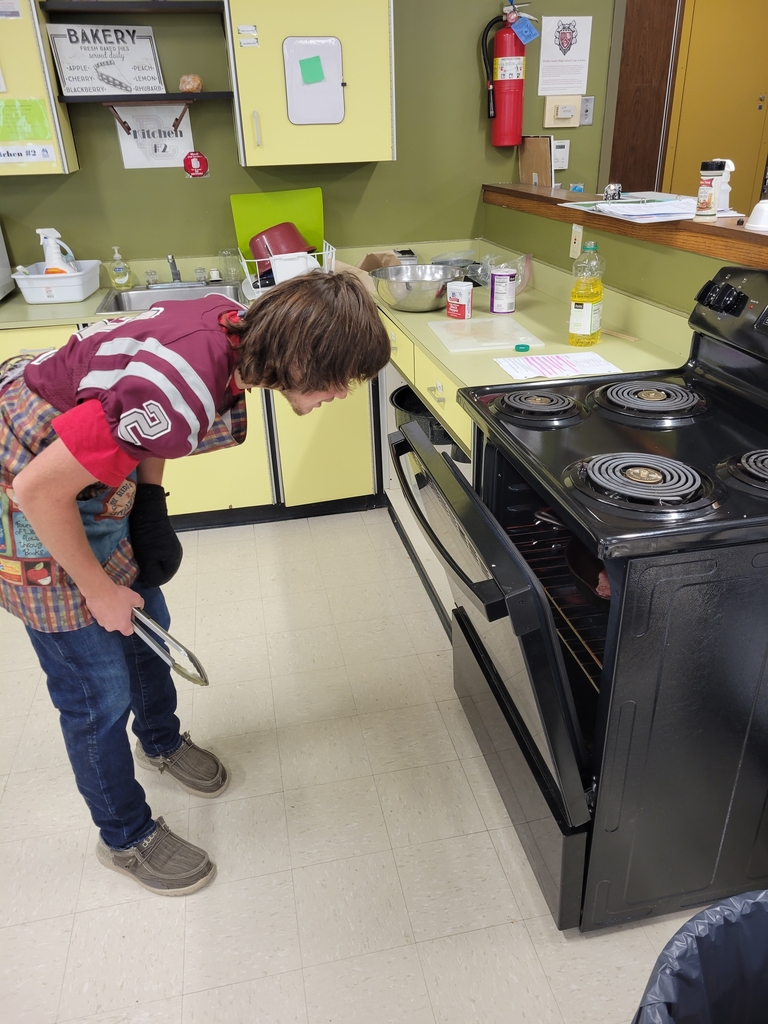 8th Grade FACS students made chocolate chip muffins from scratch today. We even had help from an expert!